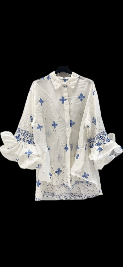 Chemisier flamenco fleurs bleu